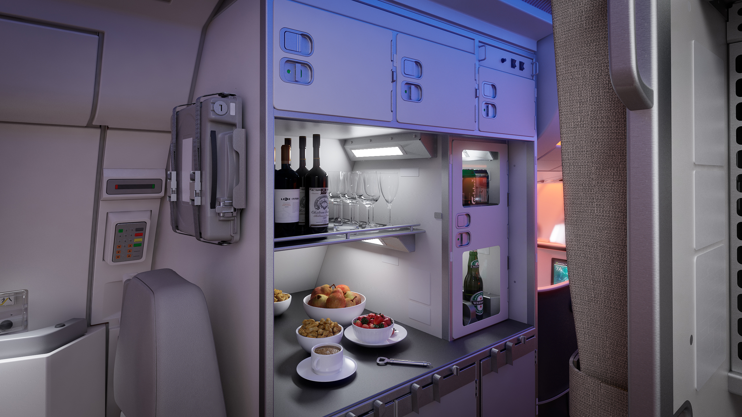 At Bucher, we don’t just produce cabin elements, we engineer solutions that set new standards in lightweight design, durability, and flexibility. Our Galleys and Stowages incorporate intelligent fixation systems and electrical integrations, enabling fast, error-free installation and reliable long-term performance. The Self-Service Bar exemplifies our commitment to passenger convenience and operational efficiency in modern airline cabins.